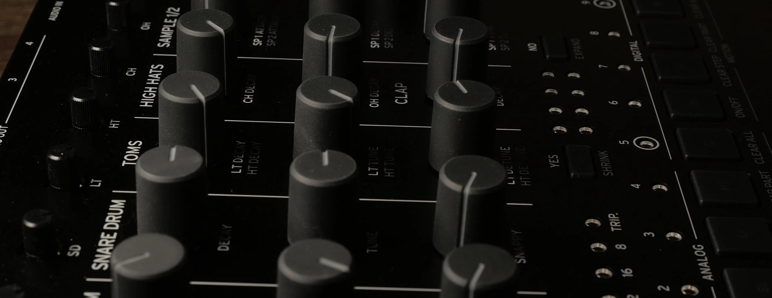 The build is interesting, it feels like a drum machine, even though it is capable of much more. The main body is plastic, with an aluminum faceplate, and wood side panels. The knobs range from nice normal sized sturdy potentiometers, that have a slick rotational feel, to tiny volca sized knobs, to fairly cheap feeling detented encoders. The buttons are a bit stiff, making it hard to finger drum, and sometimes hard to program. For example, you can’t really slide your fingers across the steps to activate them all, some will, but not all of them. I’d also add the red LED’s are a bit bright for my taste, and the shift functions are a bit too dark. Though the backlit buttons with text are perfect, and look really cool. Sometimes the UI is a bit confusing, the front panel controls aren’t in any of the pages, and I often forget they are even available as I’m digging through the encoder interface. There are also 4 additional outs after L/R, which is really nice, always fun to send individual drums into effects. I’ll be running mine into all 4 Octatrack inputs.